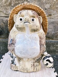 こちらのたぬきはリアルさを追求した部類のものでサイズも65㎝と膝上ぐらいの高さがありずしりとかなり重量が御座います。
