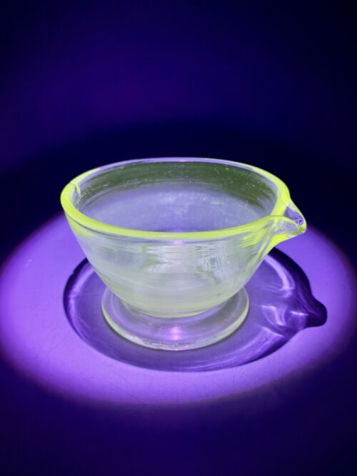 今日は熊本市北区徳王のお客様宅より、ウランガラスのすり鉢を買取いたしました。蛍光色に妖しく光るコチラの正体は、健康を害さない極微量のウランが配合させているため、赤外線に反応してこのように光るというわけです。分厚いガラスがなんともレトロな雰囲気を感じますね!