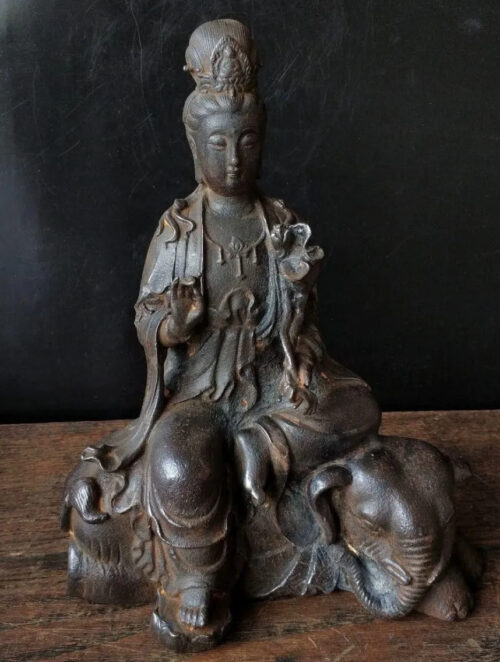 本日は熊本市北区池田のお客様宅へ出張買取!鉄製の普賢菩薩観音坐像を買取いたしました。穏やかな表情、服の皺や質感も緻密で大変素晴らしいお品物です。重厚感があり木彫りとはまた違った良さがあるなと感じます。この度は大変貴重なお品物をお譲りいただき誠にありがとうございました!